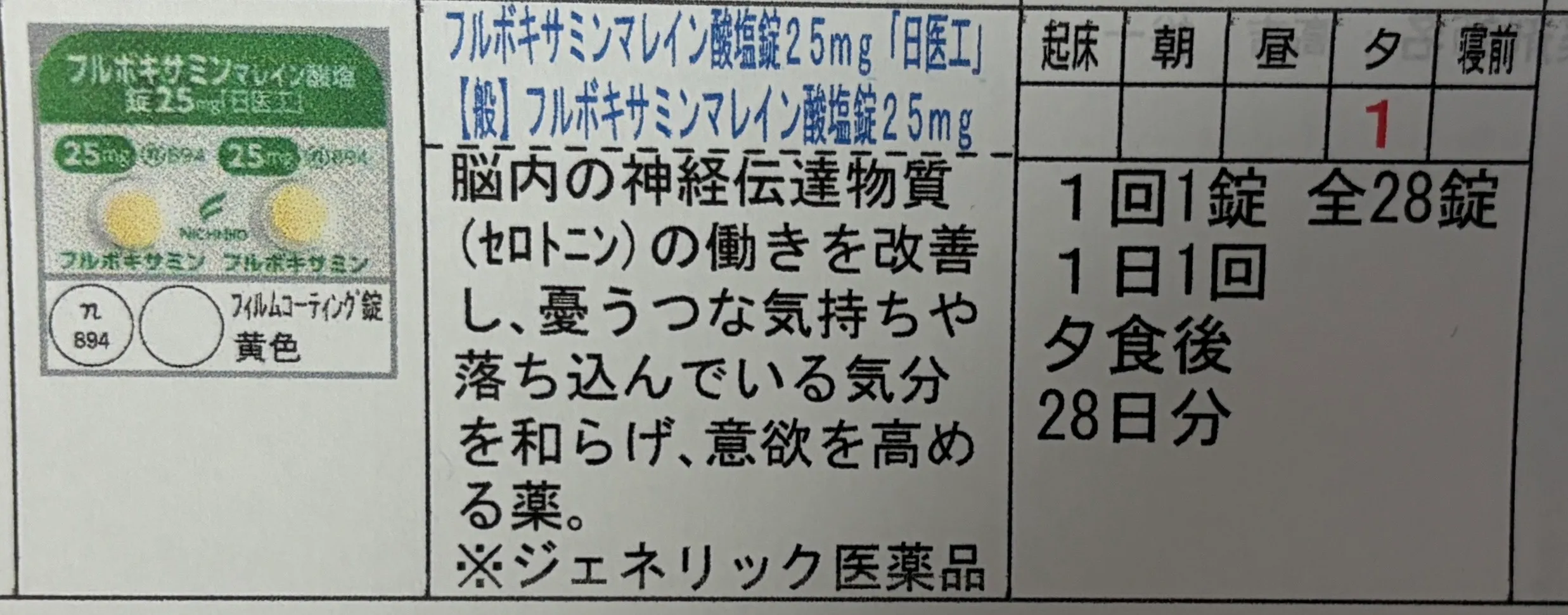 - フルボキサミンマレイン(ルボックス,抗うつ剤):25mg
